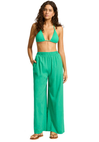 Shirred Waist Sorrento Vivid Green Beach Trousers