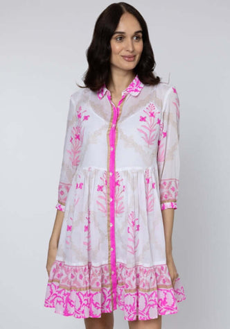 Poplin Tiered Mini Dress Flamingo