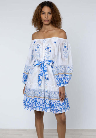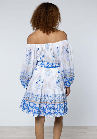 Mexican Embroidered Off Shoulder Dress Hydrangea