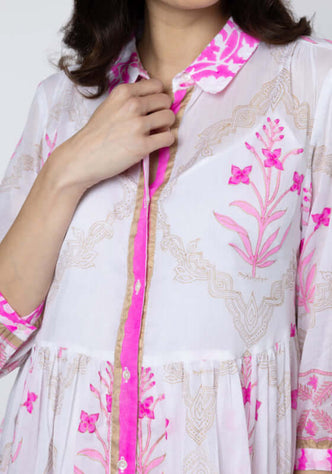 Ric Rac Blouson Dress White