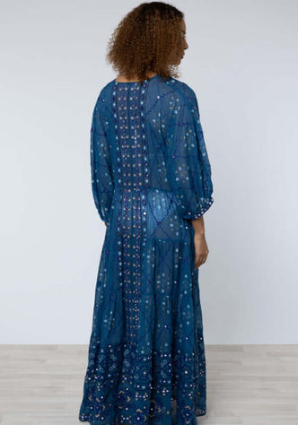 Dhaka V Neck Kaftan Blue