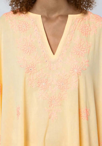 Mexican Embroidered V Neck Kaftan Hydrangea