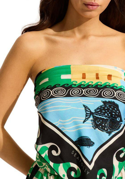 The Atlantis Scarf in Ecru by designer Seafolly can be styled in many ways. This bold printed scarf works perfectly as a lightweight adjustable top for a warm summers evening or a mini sarong.