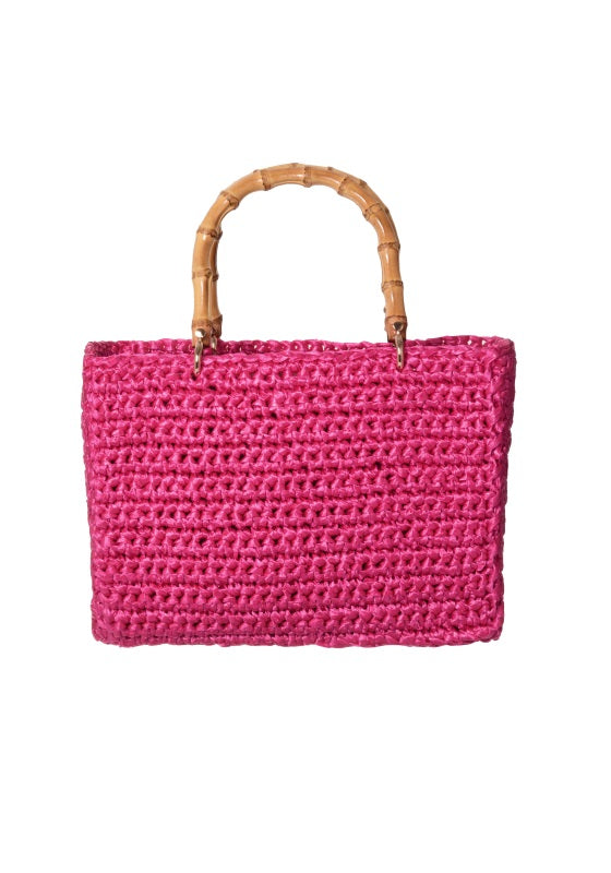 Complete your summer look with the Biancaneve Bag in Pink by Chica Bags.   The perfect addition to your summer wardrobe, this stylish raffia bag in Pink features bamboo handles and a fabric inner bag with zip fastening.