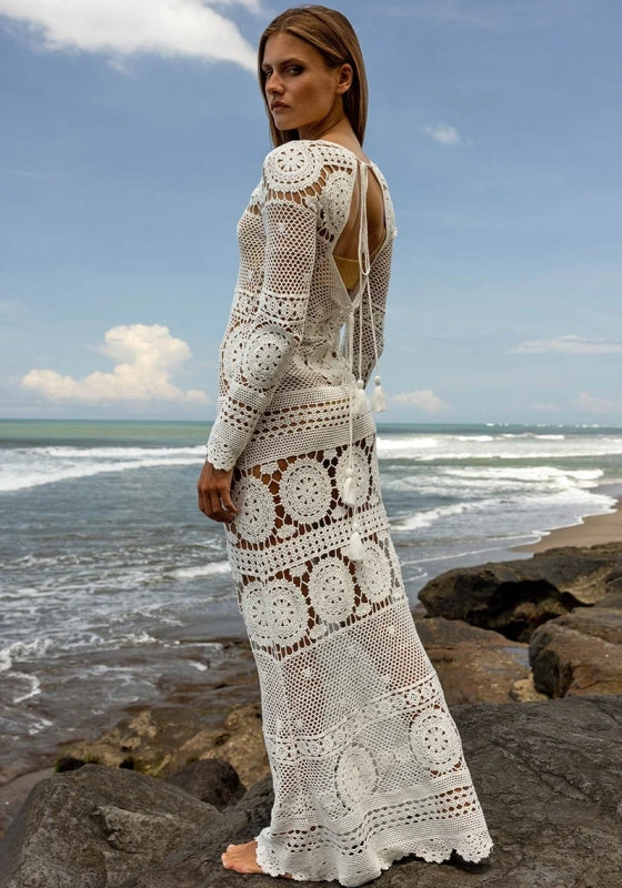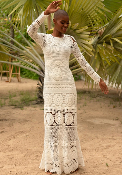 Turn heads in the Birkin Dress by resortwear designer Miss June. This cotton crochet maxi dress features a gorgeous tight knit embroidery to flatter the figure with a flirty boho feel this dress will be the perfect new addition to your summer wardrobe. Available in one size fits most from size UK 8 – 14