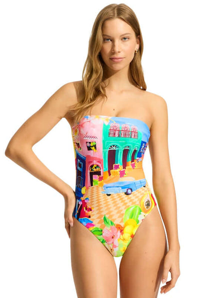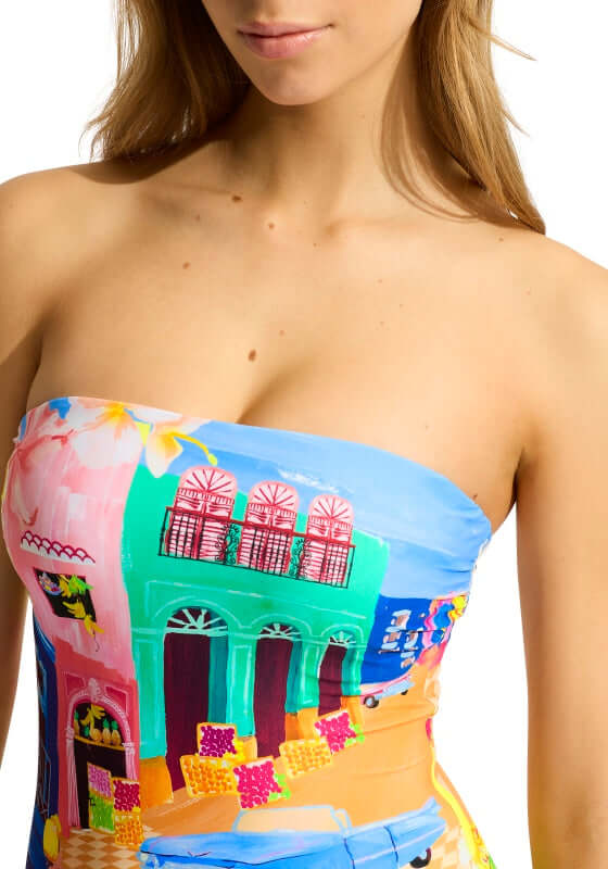 Look chic in the Cuba DD Bandeau Swimsuit in pink by swimwear designer Seafolly. This flattering bandeau swimsuit features ruffle trim, with hidden underwire and optional adjustable straps to create the perfect fit.