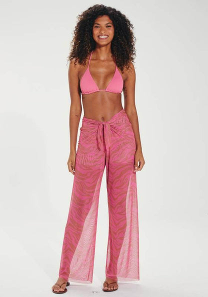 Your new pool side favourite! The Dani Pareo Pant in a pink animal print by Swimwear designer Vix is the perfect holiday companion. With a flattering tie front detail and wide leg cut in a lovely breathable mesh. Match with your favourite Bikini from the Vix Dani collection.