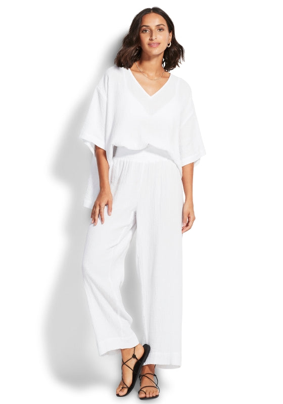 Look effortlessly chic in the Double Cloth Shirring Pants in white from beachwear designer Seafolly. These relaxed fitting trousers are crafted in lightweight cotton and feature an elasticated waistband and straight leg. A must have for your wardrobe this summer.