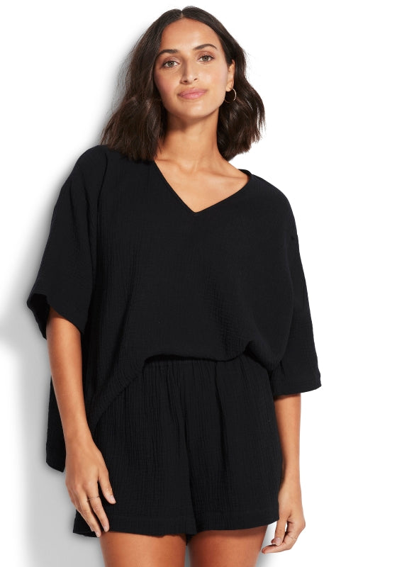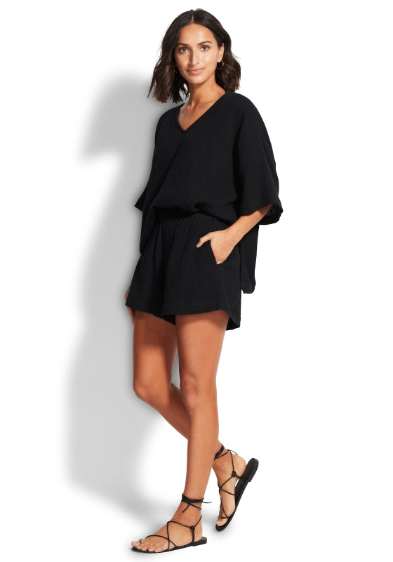 Look effortlessly chic in the Double Cloth Shorts in Black from beachwear designer Seafolly. These relaxed fitting shorts are crafted in lightweight cotton with an elasticated waistband, a must have for your wardrobe this summer.