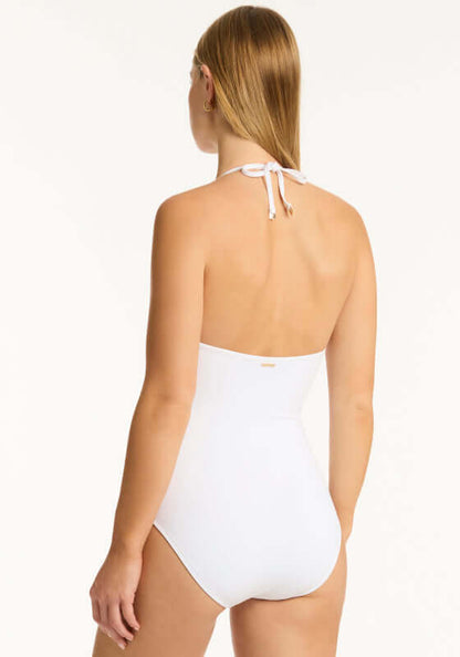 Introducing Drift by swimwear designer Sea Level Australia, the eco-friendly, sculptural halter swimsuit featuring eyelet mesh panels, adjustable straps, and a scoop back. Made with over 70% recycled materials, it offers front and back support with its Power mesh lining and removable soft cups for a perfect fit. Upgrade your swimsuit game with Drift.