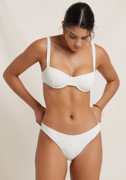 Embrace vintage elegance with the Essential Crop Bikini in Vintage Cream by beachwear designer Peony. This flattering balconette design features soft removable cups, supportive underwire, and thick adjustable straps for all-day comfort. Complete with premium golden hardware and multiple back closure options, this bikini is true to size and designed to make you feel confident at the beach or poolside.