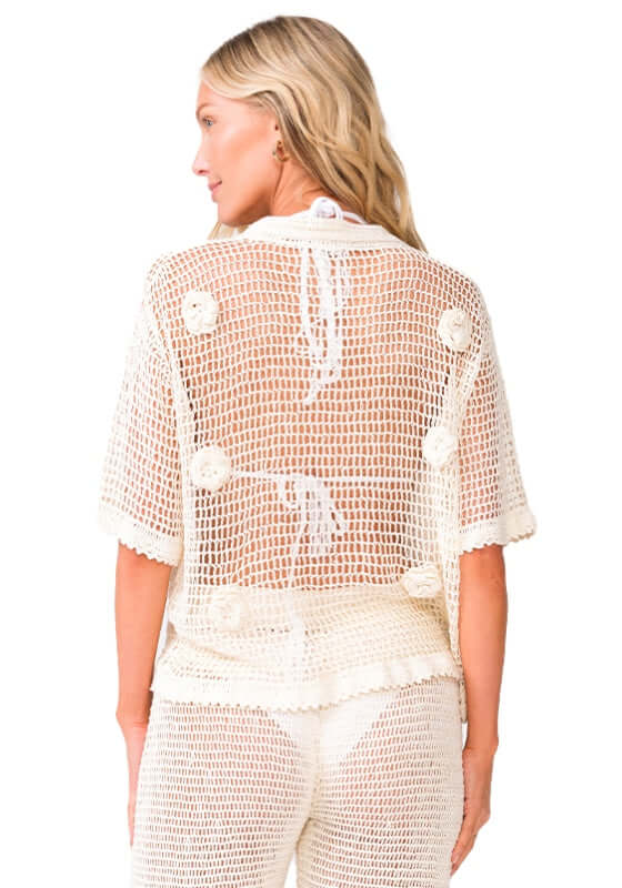 Add a touch of elegance to your wardrobe with the Flower Crochet Top in ivory by swimwear designer PQ Swim. This beautifully crafted shirt features delicate crochet flowers, adding a feminine touch to any outfit. Perfect for a casual day out or a special occasion, this top is sure to make you stand out.