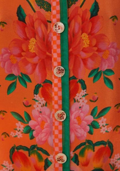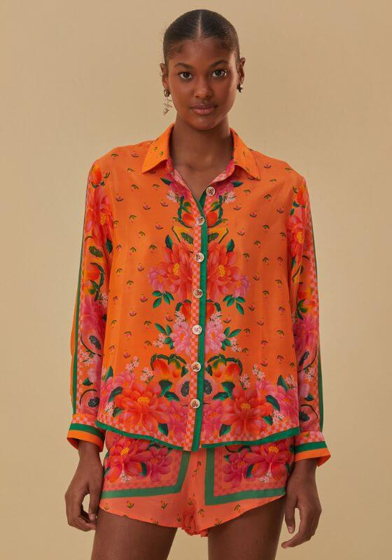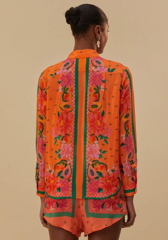 The Fruit Garden Scarf Shirt by resortwear designer Farm Rio radiates vibrant energy! This beautiful shirt features a button down front, relaxed collar and cuffed long sleeves. Perfectly paired with the Fruit Garden Scarf Shorts.