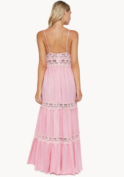 Turn heads in the Gelato Shea Dress by swimwear designer PQ Swim. This beautiful summer dress features intricate embroidery under the bust with lace detailing that is carried to the back of the dress with a slightly low back finish and adjustable straps. This relaxed fit dress will be the perfect new addition to your summer wardrobe.  100% Viscose