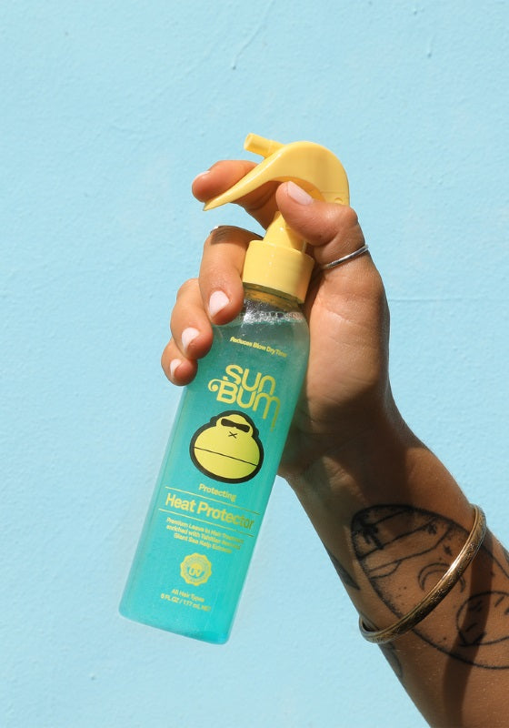 Sun Bums Heat Protector dramatically decreases blow-dry time and helps protect against thermal heat that can cause damage and breakage to hair. The two-phase formula delivers a lightweight nourishing blend to help eliminate frizz and resist humidity. Works with all heat tools such as blow dryers, flat irons, curling wands, and curling irons.
