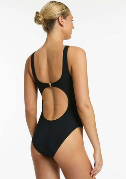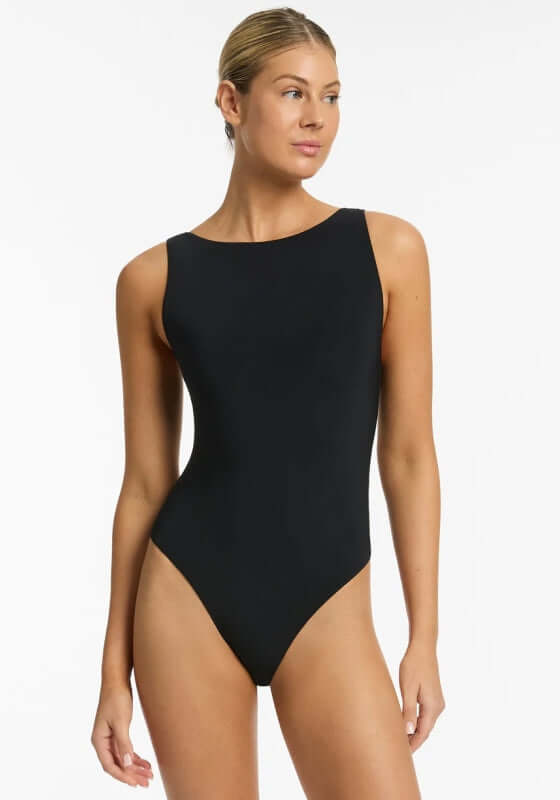 Get ready to turn heads this summer with the Jetset High Leg Tank Swimsuit by swimwear designer Jets Australia. Featuring a matte fabric base and keyhole cutout detailing, this swimsuit is perfect for A-C cups. With a back clip closure and high leg design, you'll feel confident and stylish all season.