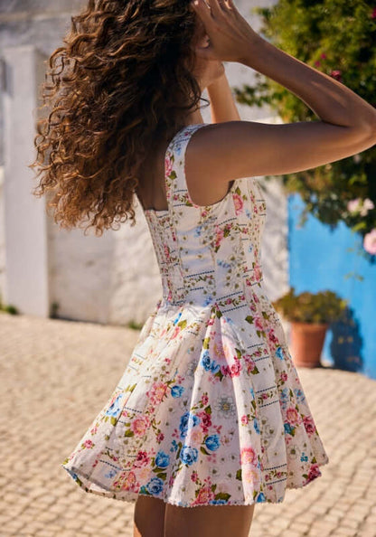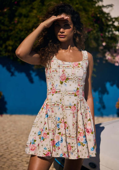Elevate your style with the Kristen Dress in Meraki by beachwear designer Agua Bendita. Designed for both comfort and elegance, the dress features a structured bodice for a flattering fit, a smocked back and zipper for easy wear, and a pleated skirt that adds a touch of chic to any occasion. Perfect for any fashion-forward individual.