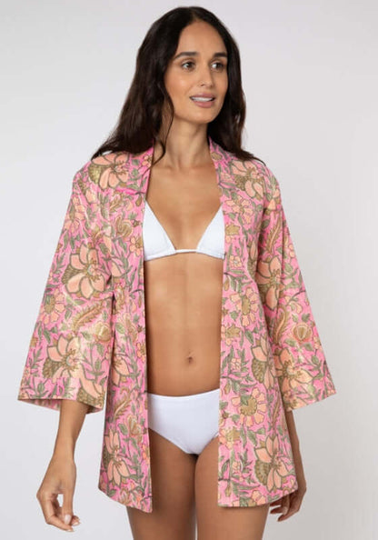 Pink Floral Short Kimono