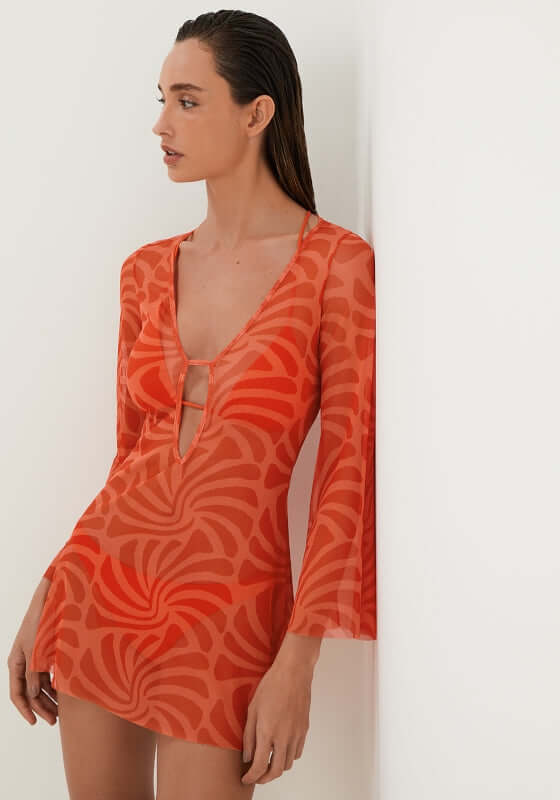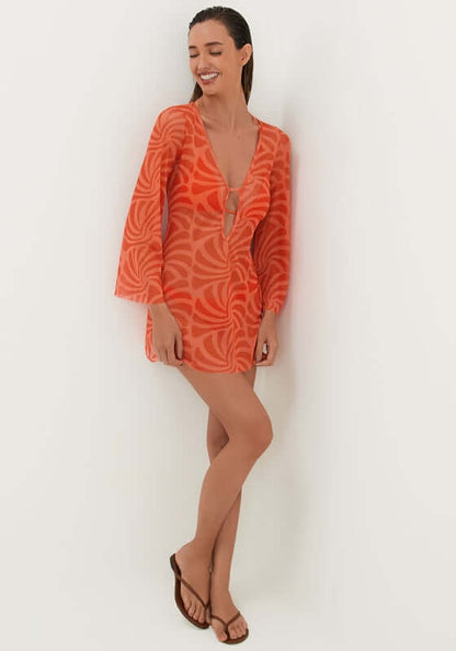 Effortlessly elegant, the ViX Lidi Short Cover Up is made of soft, wrinkle-resistant mesh. With a flattering plunging V-neckline and long flared trumpet sleeves, this mini dress also features a keyhole detail for a refined look. Perfect for transitioning from beach to brunch, paired with a swimsuit and sandals.