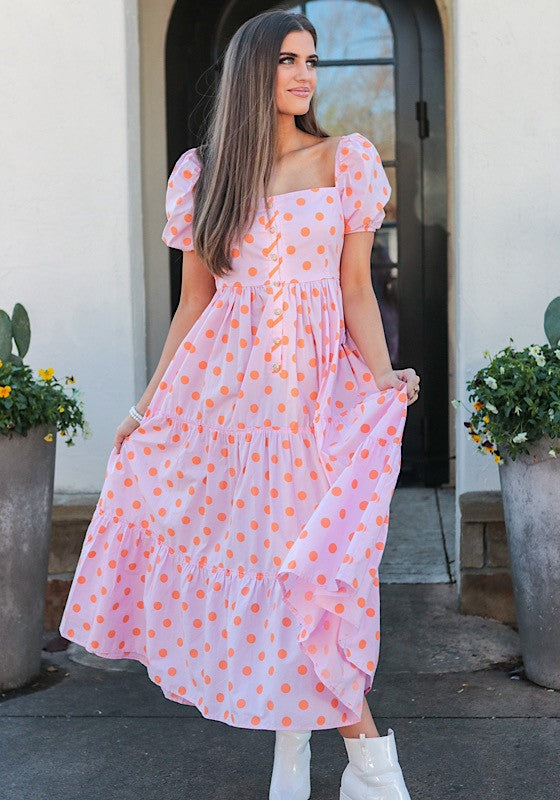 For an effortless look choose the Pattern Play Prairie dress in Patterned Pink by beach wear designer Pitusa. The midi length dress features a subtle sweetheart neckline with short puffed sleeves and a button down front. Complete with a tiered skirt in statement Patterned Pink print, a must have addition to your wardrobe.