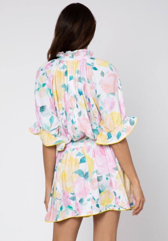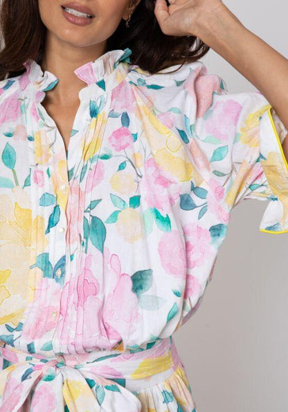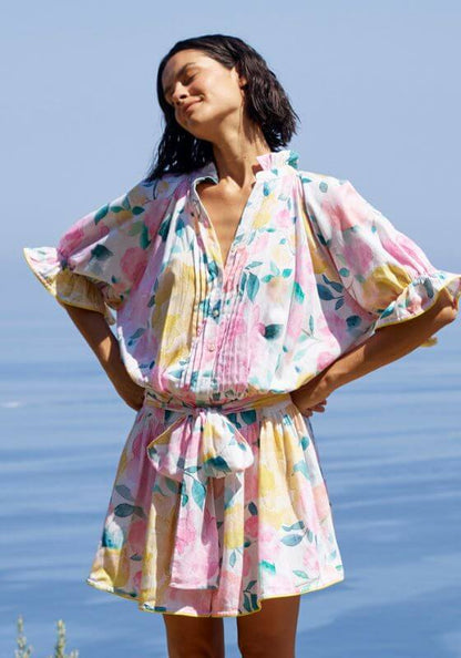 Turn heads in Juliet Dunn’s bestselling Blouson Dress updated for 2024 in a Peony Pint with a lemon coloured hem. This must have style features a button down front with pintuck detailing, short puff sleeves finished with tiny scalloped edging and an elasticated waist with bow detail. The versatile dress can be worn everywhere from the beach to hot summer days in the city.