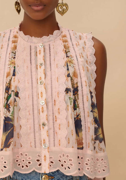 Experience the perfect blend of elegance and charm with the Pink Dream Garden Blouse from FARM Rio. Featuring vibrant floral patterns and delicate ruffles, this blouse offers a touch of sophistication and whimsy. Made with soft, flowing fabric, it promises all-day comfort. Infuse your wardrobe with joyful exuberance with this beautiful blouse.
