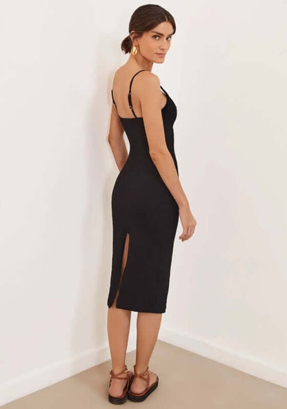 The Seraphine midi dress from beachwear designer Vix is crafted from their exclusive Firenze fabric. This beach dress features intricate knotted details down the front of the top, with a back leg slit, and a flattering V-neck to finish off this chic design.  Model wears size small and is 5'7