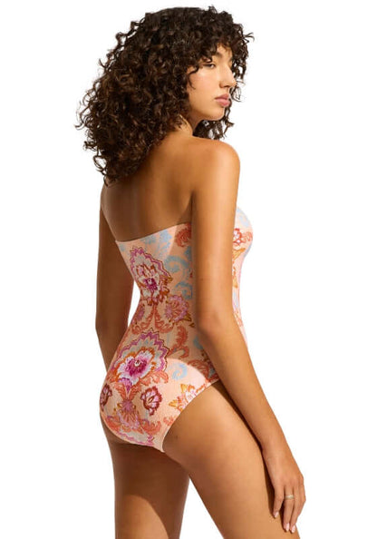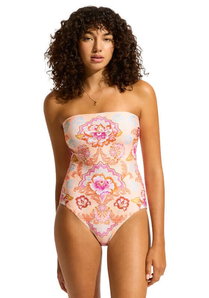 The Bandeau Swimsuit in Nectar by Seafolly is part of the Spring Festival collection inspired by bohemian and decorative influences. This simple silhouette is elevated by the fun boho print in spring colours.