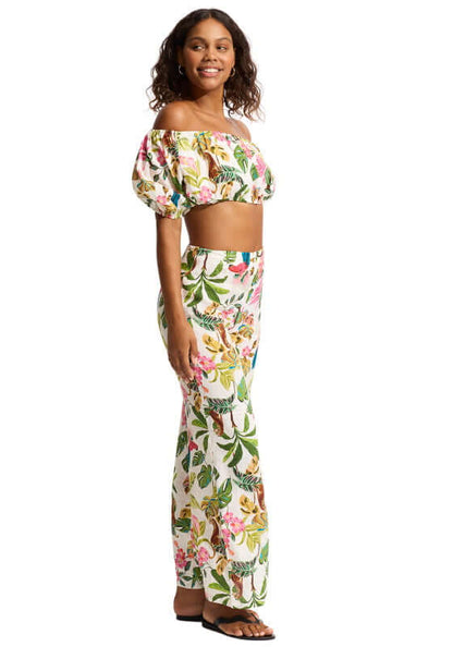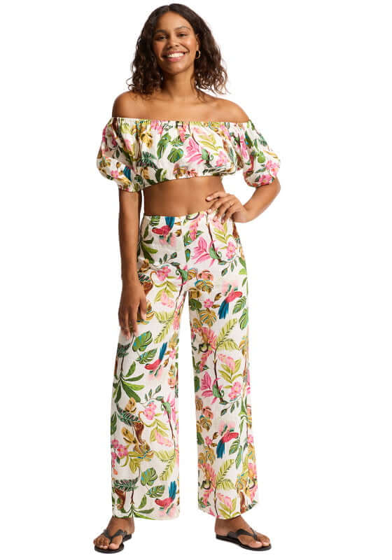 The Tropica Beach Trousers by beachwear designer Seafolly will be your new go to holiday outfit! This linen wide leg pant featuring a  hidden side zip with a relaxed leg for a flattering and effortless look. Designed to be worn as a co-ord  with the Tropica off Shoulder Top.