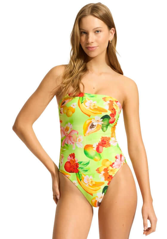 Look chic in the Tropique DD Bandeau Swimsuit in Aloe Gel by swimwear designer Seafolly. This flattering bandeau swimsuit features hidden underwire and optional adjustable straps to create the perfect fit. Browse our curated edit of luxury bandeau swimwear.