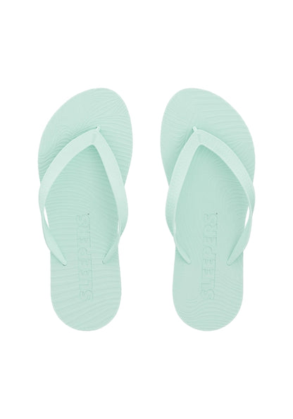 Complete your summer wardrobe with stylish Wide Strap Flip Flops in Mint by Sleepers. These summer essentials feature Sleepers' signature pattern sole, round toes and wide strap in natural rubber. Natural rubber breathes, therefore making it easy to clean and super comfortable to wear. This flip flop fits just as well in the city as on the beach.